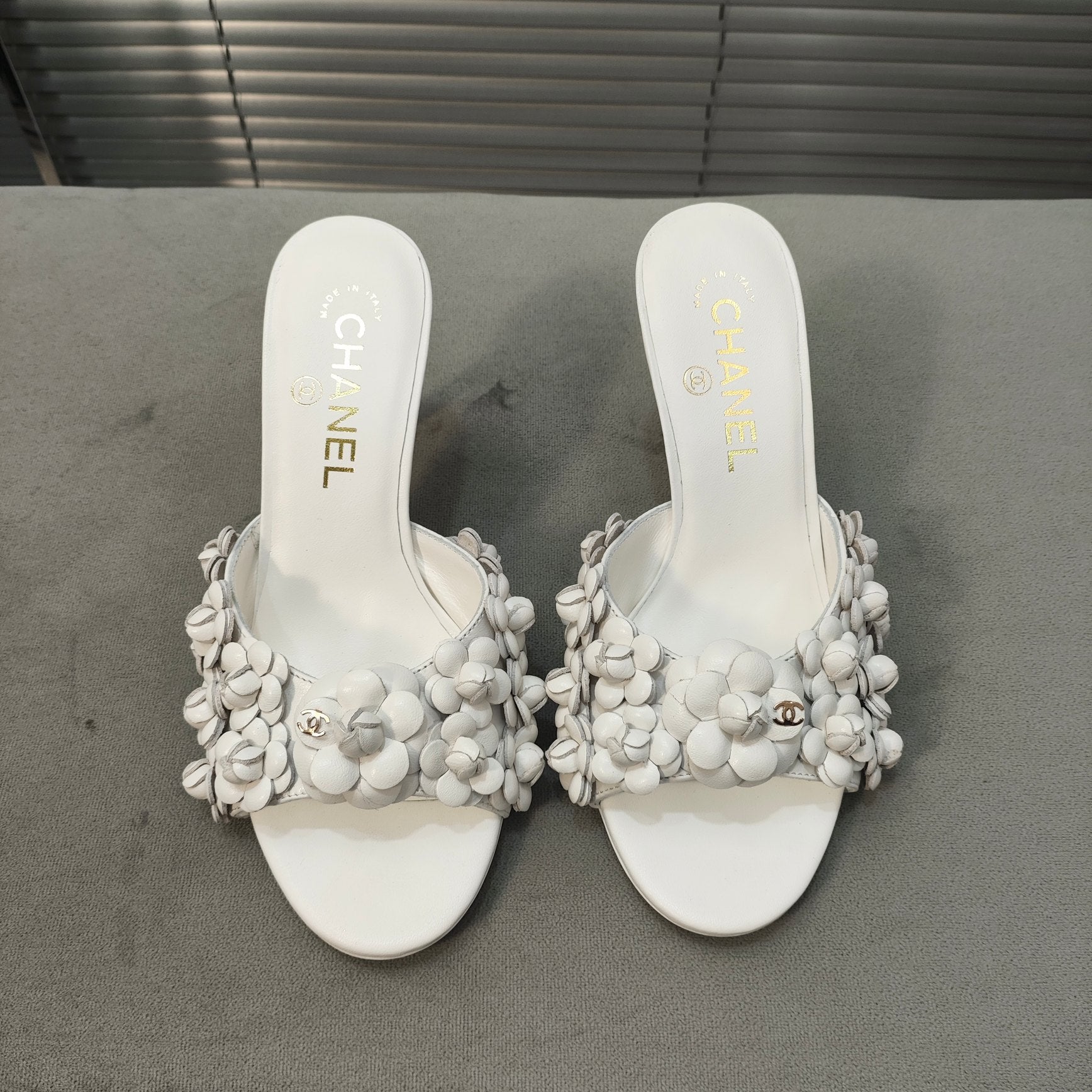 cc mule sandal 45 white tweed beige calfskin