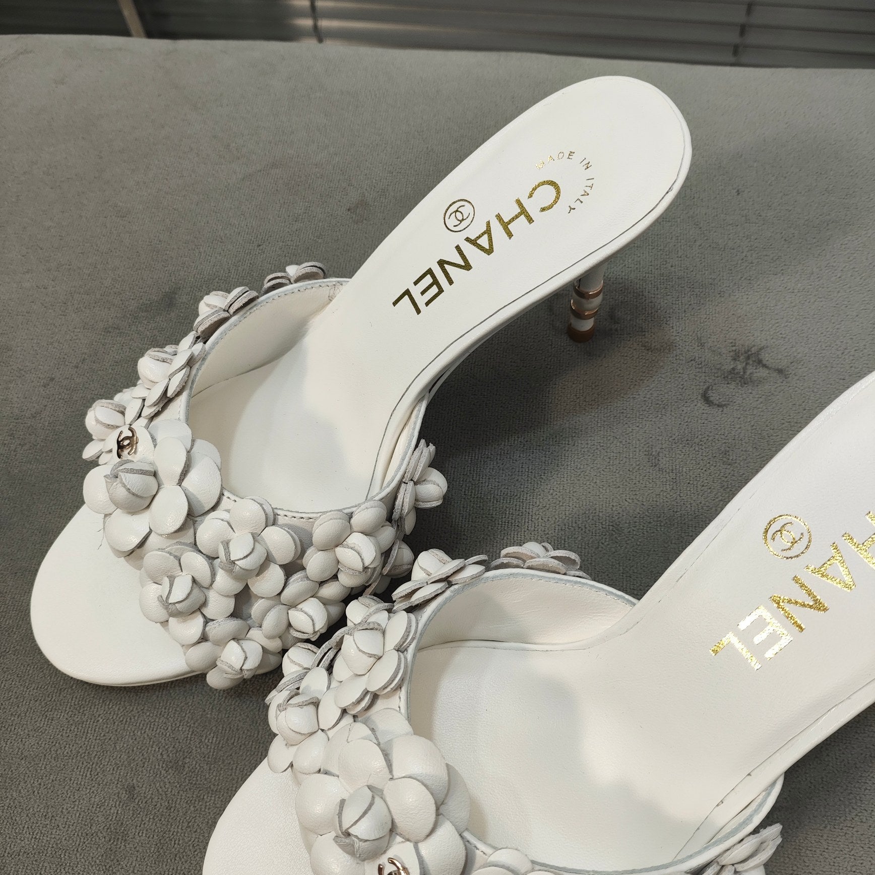 mule sandal flower high heel 80 white suede