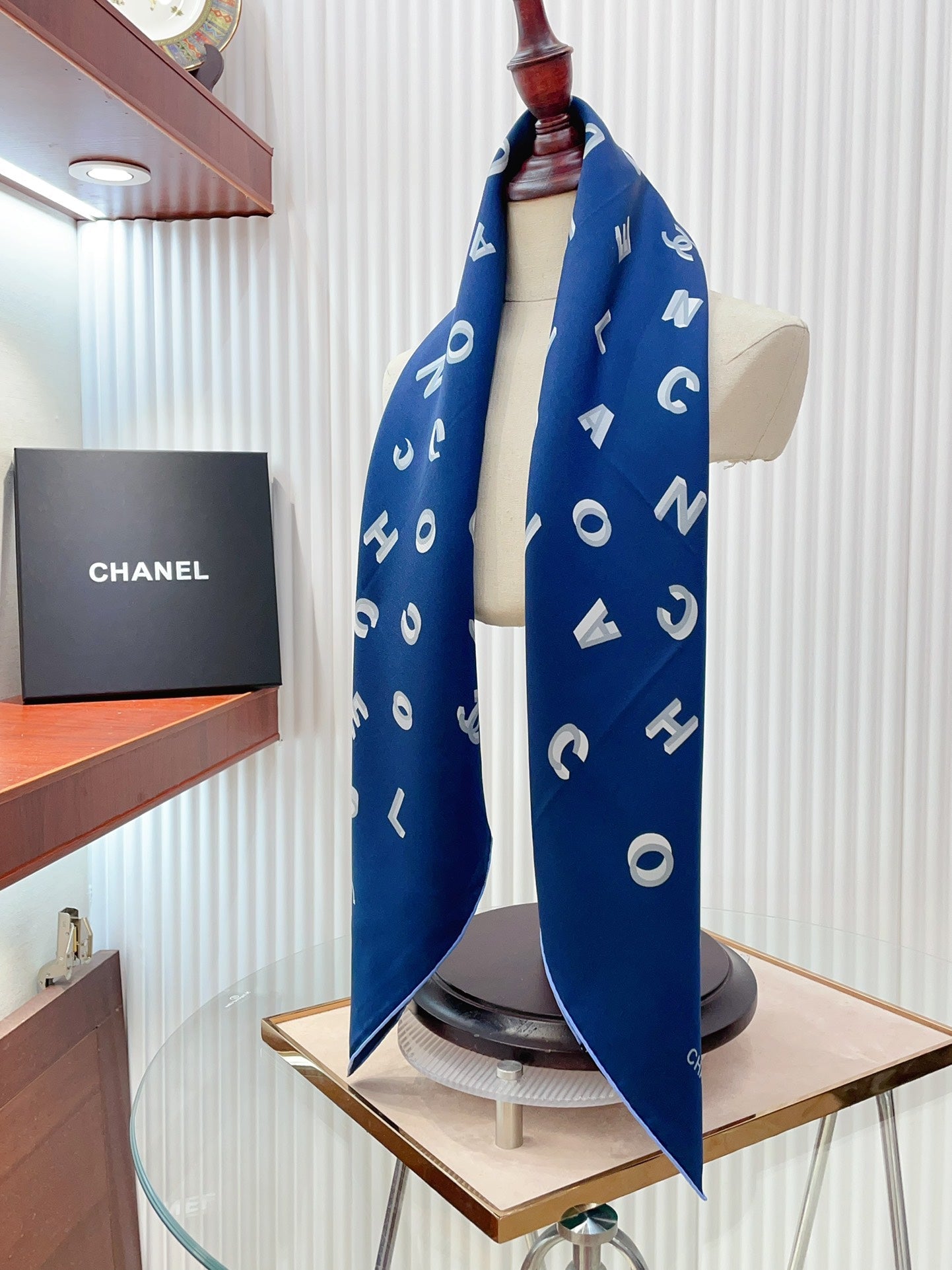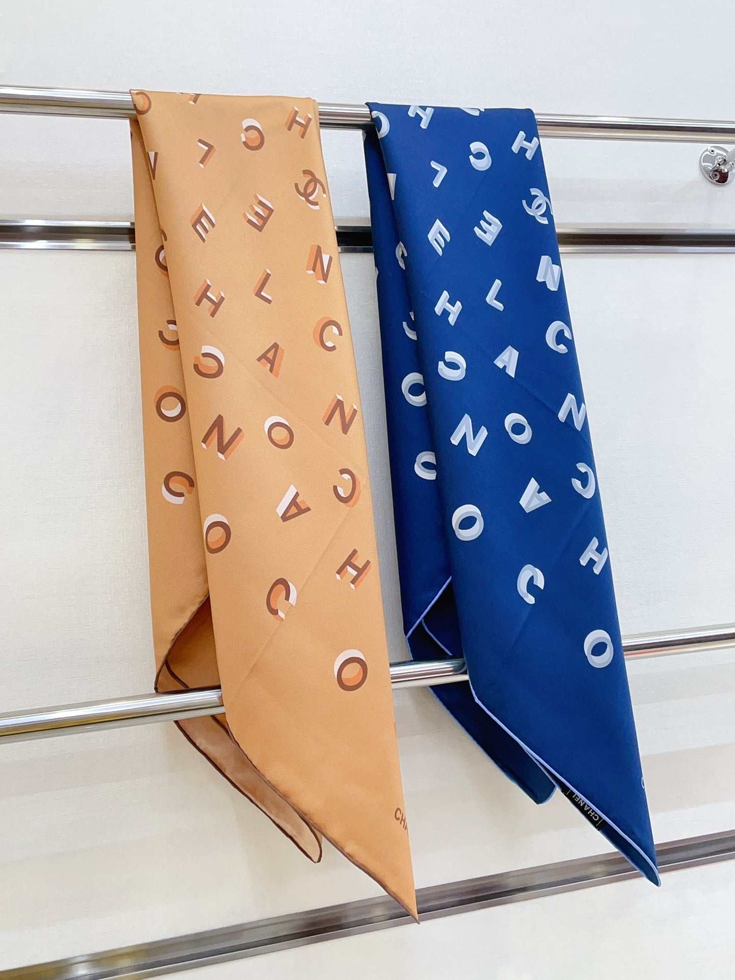 CC Square Scarf 90 CM In Blue With Printed Letters Silk Twill 208581