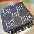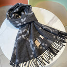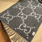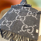 GG JACQUARD PATTERN KNIT SCARF 195 CM WITH TASSELS MOUSE GRAY 403750