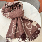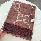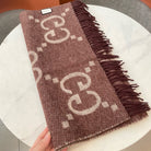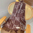 GG JACQUARD PATTERN KNIT SCARF 195 CM WITH TASSELS UMBER BROWN 403751