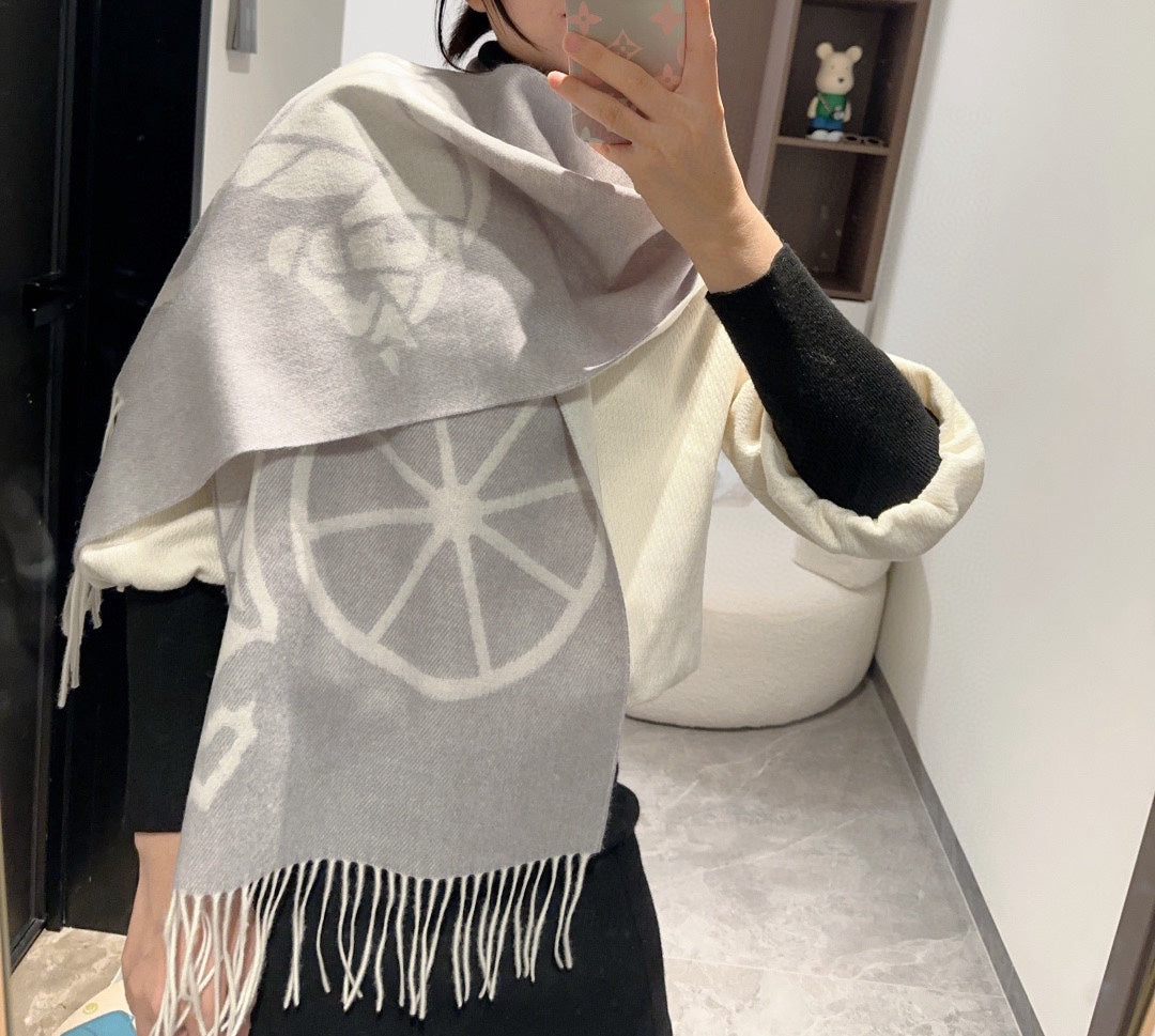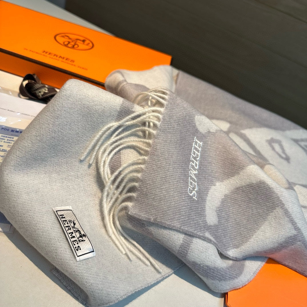 Scarf 180 CM Grey Light Grey Mix White Wool