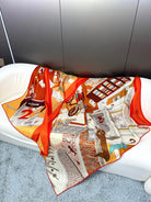 Square scarf 135 CM Yellow Orange Colorful Cashmere And Silk