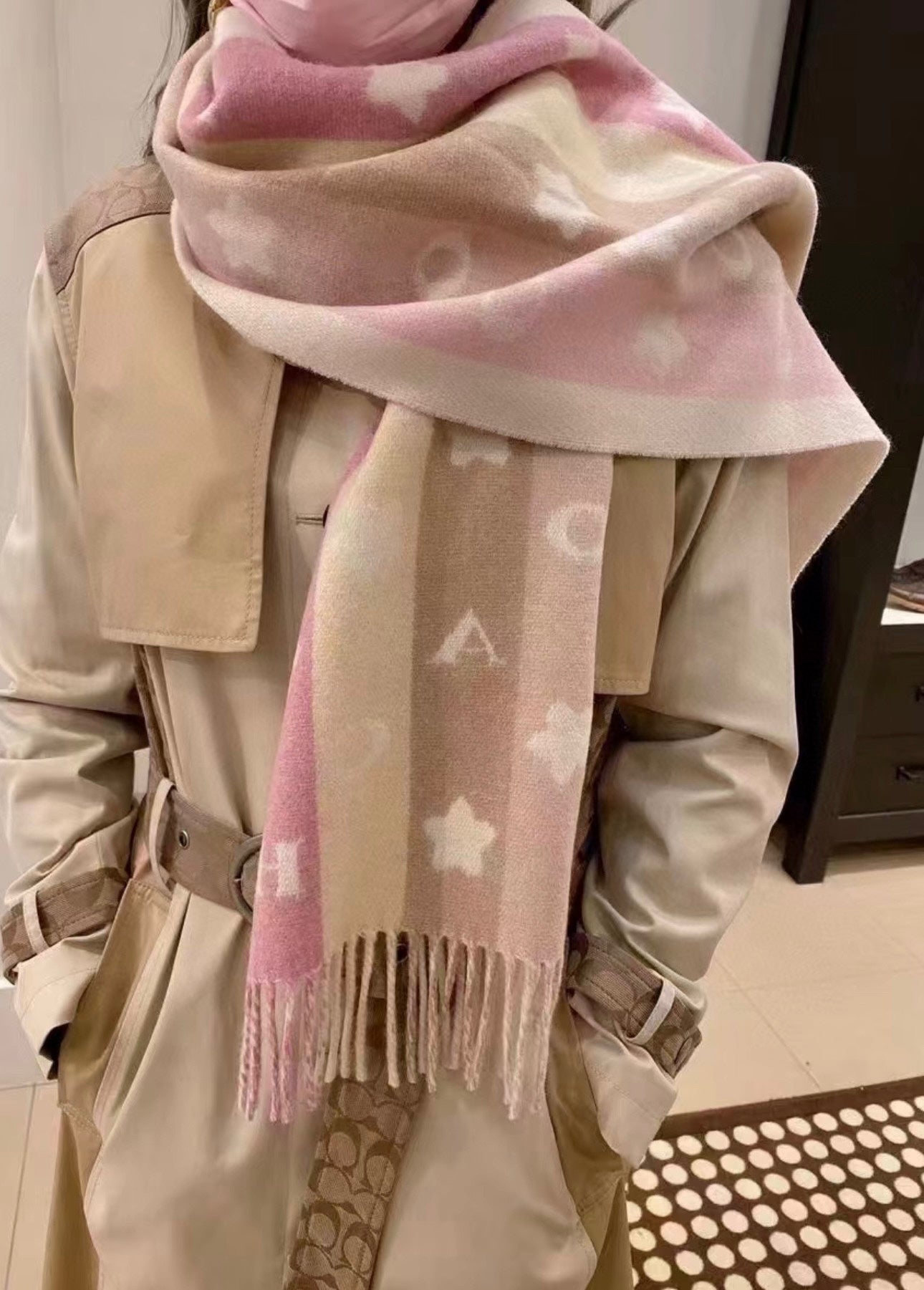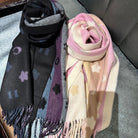 STARS AND STRIPES PRINT SCARF 183 CM IN WHITE AND COLORFUL COTTON WOOL 410185