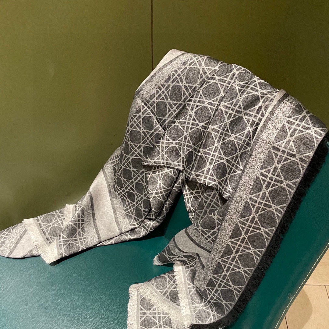 CC Scarf 180 CM In Grey Mix White Print Logo Cashmere And Wool 413632