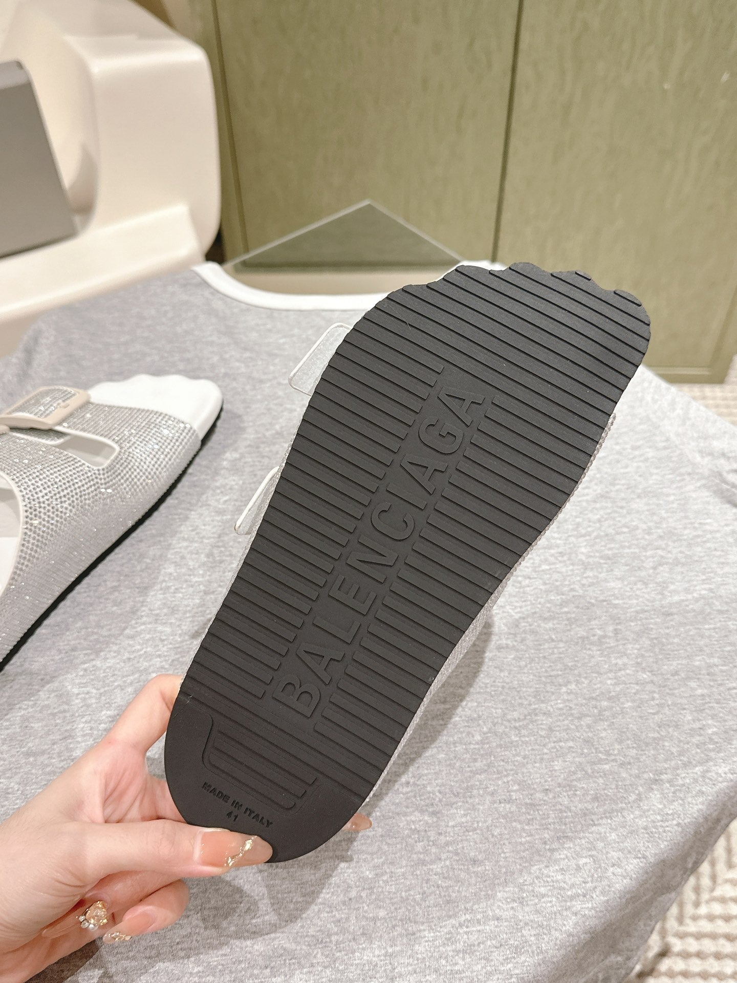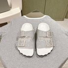 BIRKENSTOCK SLIPPERS ATTACHED RHINESTONES IN WHITE CALFSKIN
