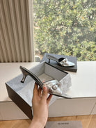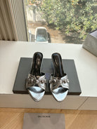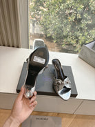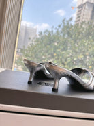 CAGOLE MID-HEEL MULES IN SILVER METALLIC CALFSKIN
