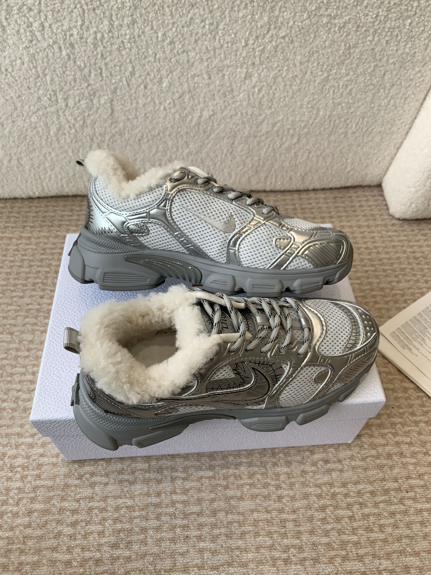 - Material: Mesh Fabric, Lambskin, fleece lining