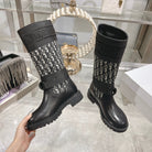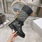 CD D-Major Boot Black Mix White Calfskin And Oblique Jacquard Fabric