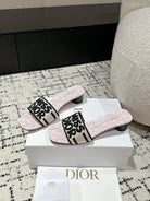 CD Dway Heeled Slide Light Pink Black Embroidered Cotton
