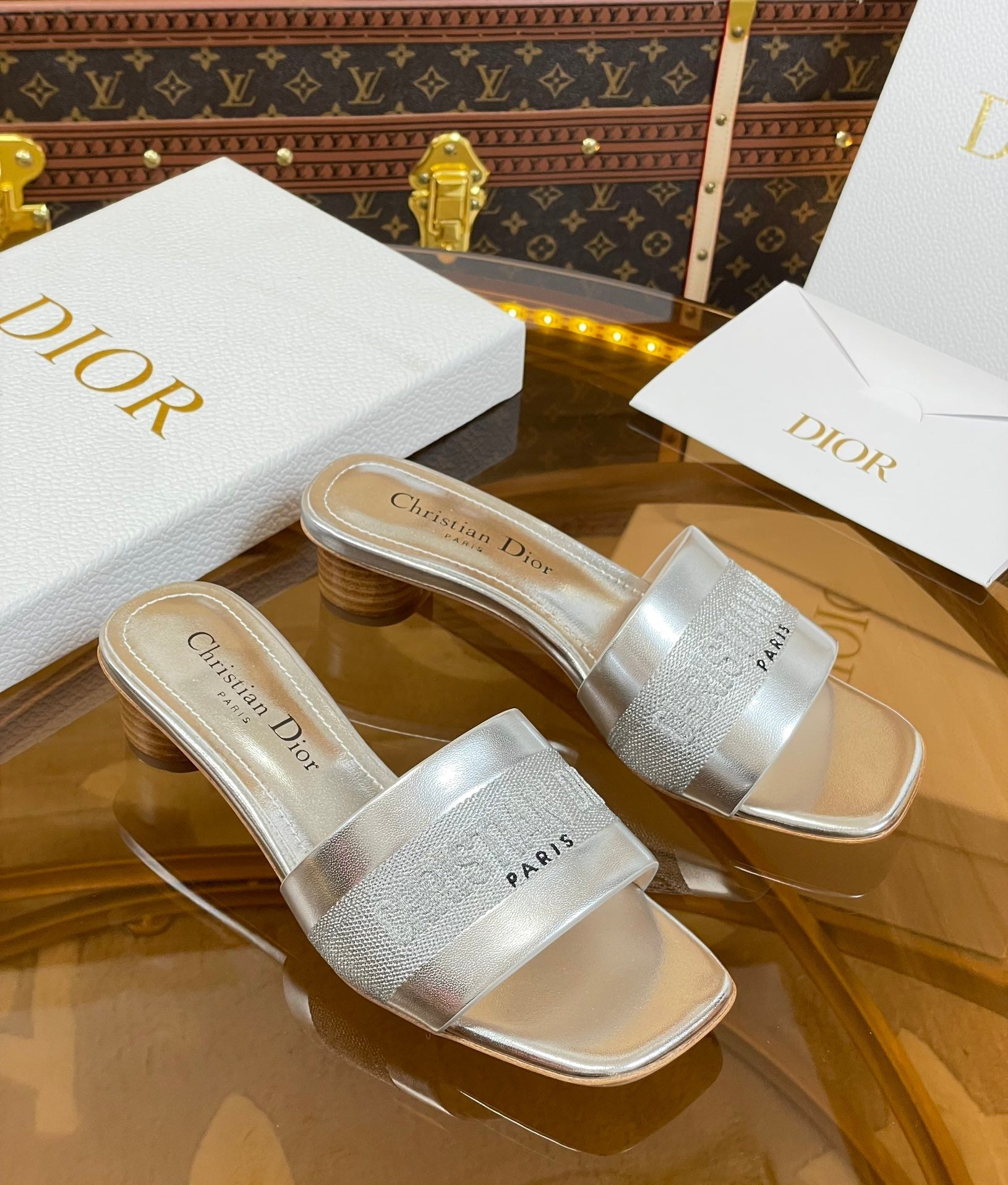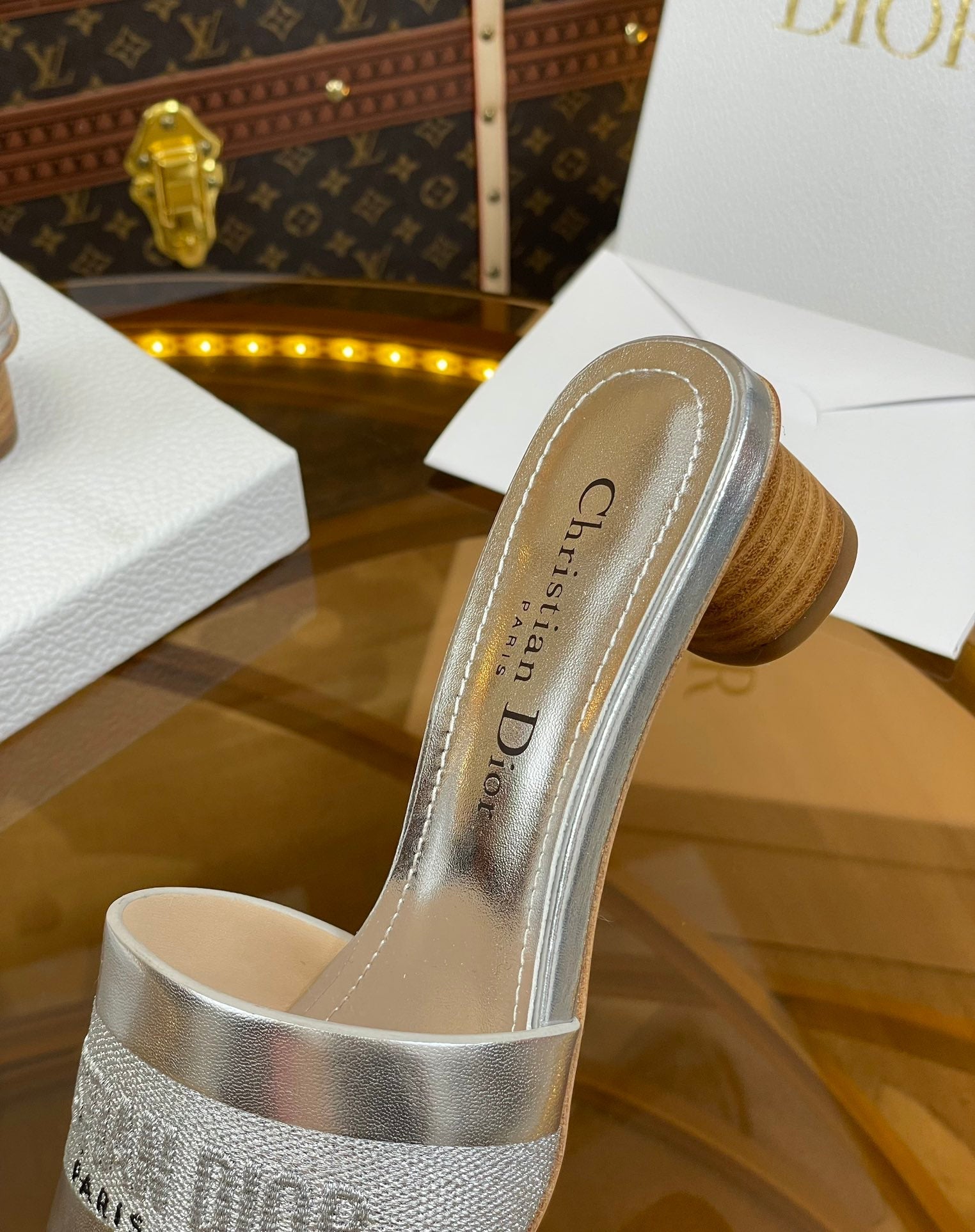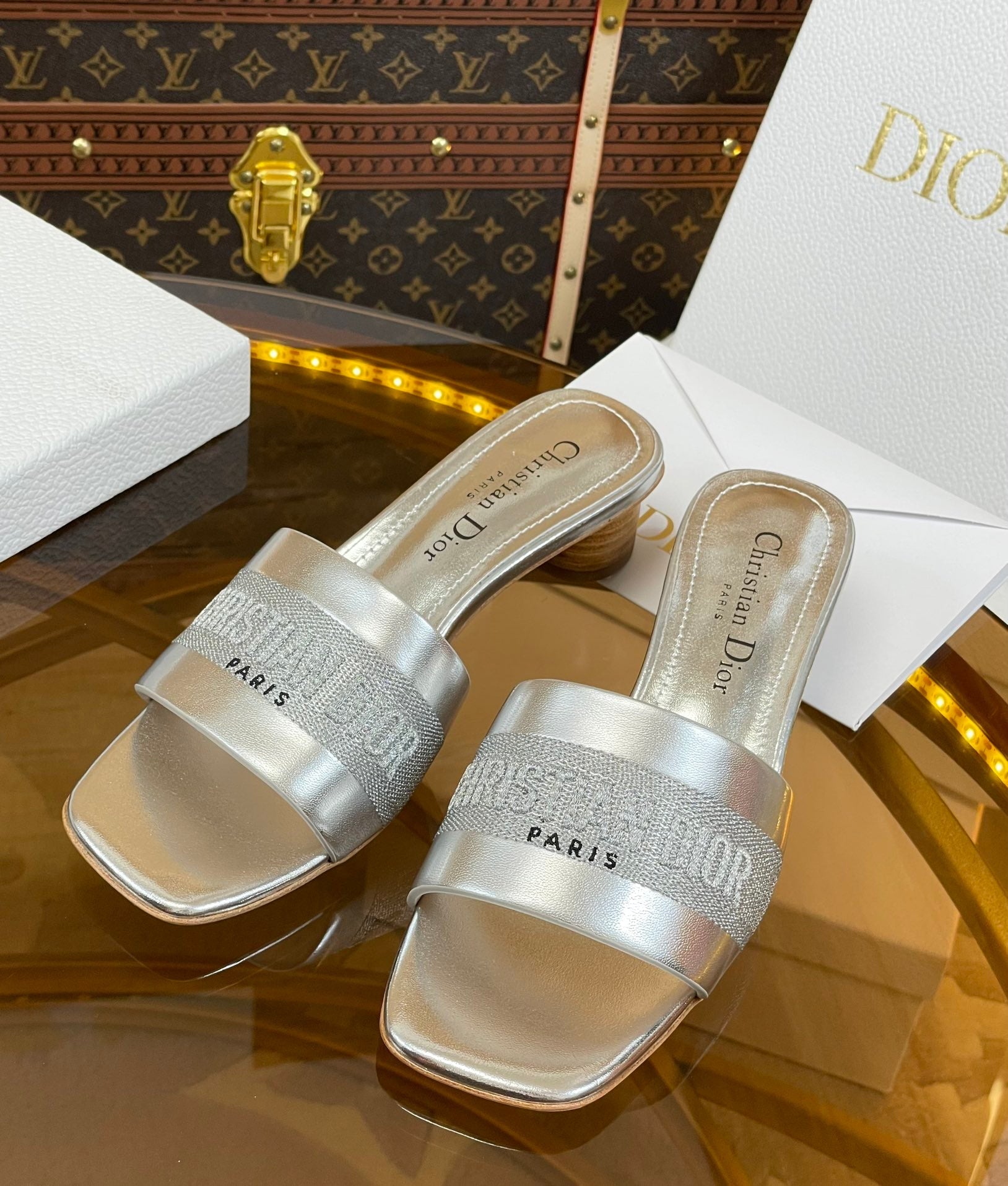 cd slide 45 silver metalic calfskin embroidered cotton