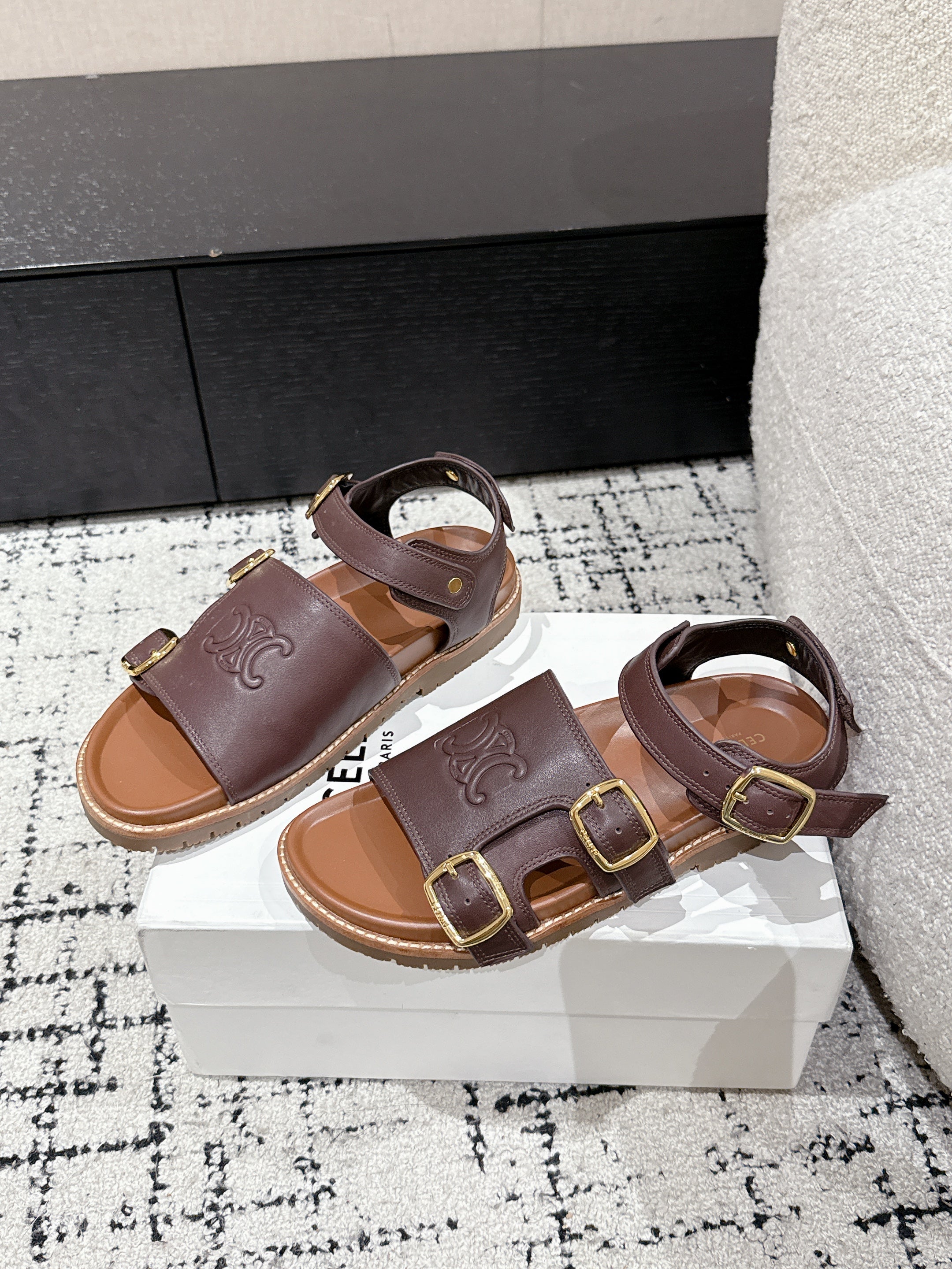 CELINE 25C Dad Sandal Mule Hickory Brown Cowhide 232352