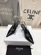 Celine 25C Slingback Pump Black Sheepskin 236774