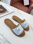 Celine 25C Slippers Baby Blue mix White Fabric with Calfskin 238165