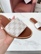 Celine 25C Slippers White Monagram Silk with Calfskin 238145