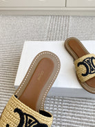 CELINE 25 Slippers Beige Black Sedge 285982