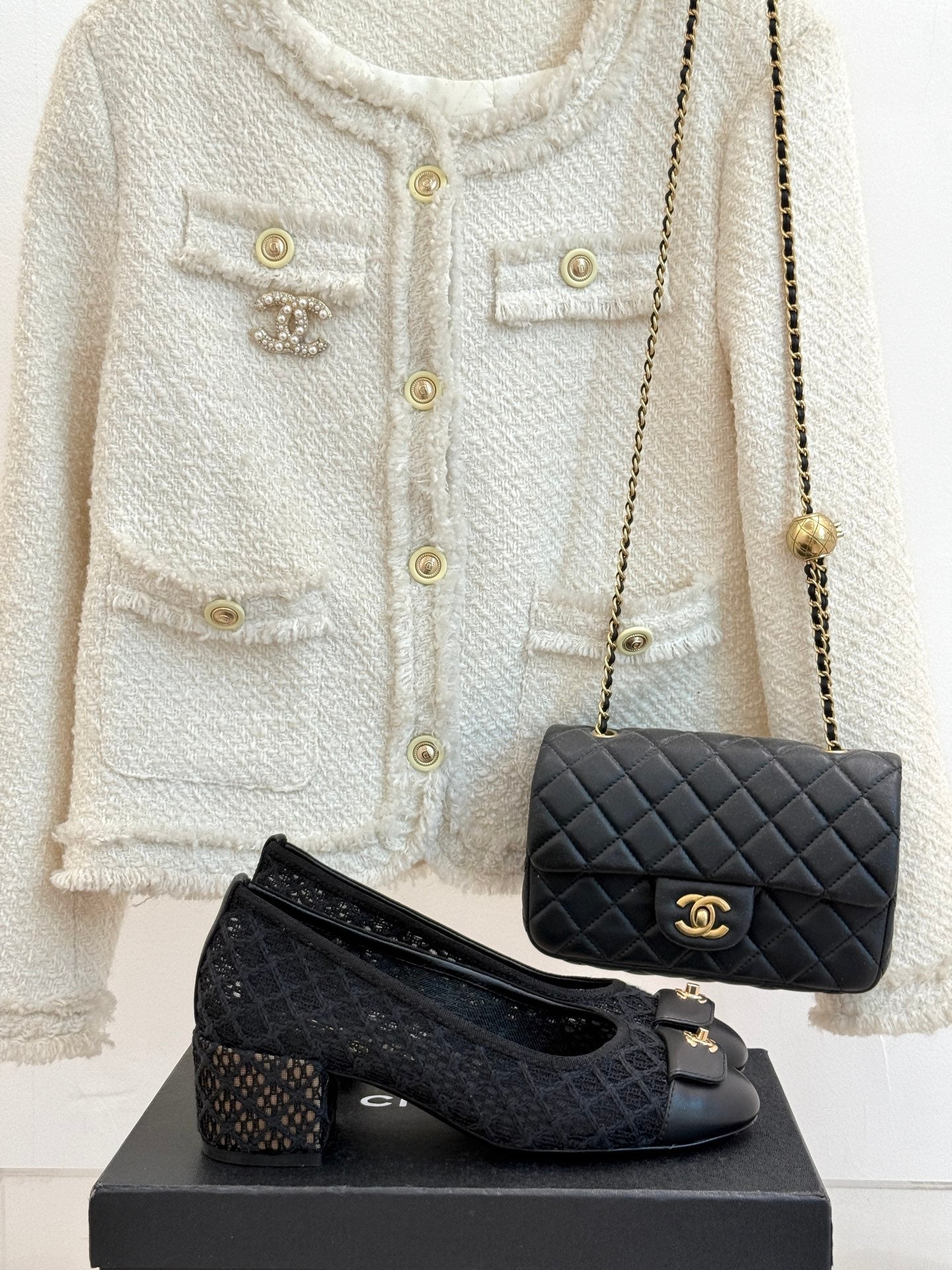 Chanel 25 Ballet Flat 50mm Black Woven Lambskin 473051