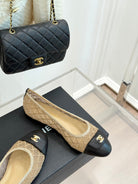 Chanel 25 Ballet Flat Beige Black Woven Lambskin 473056