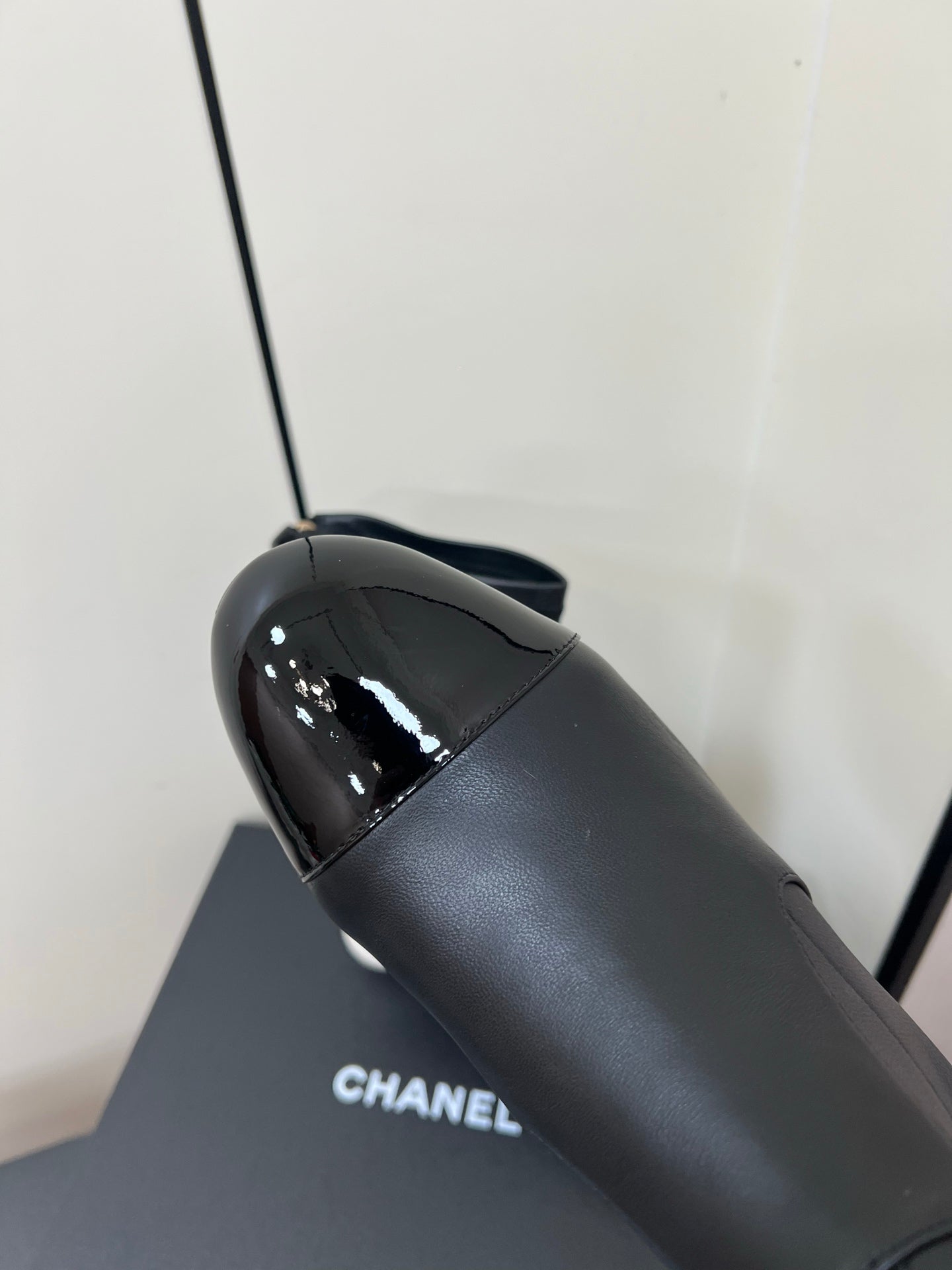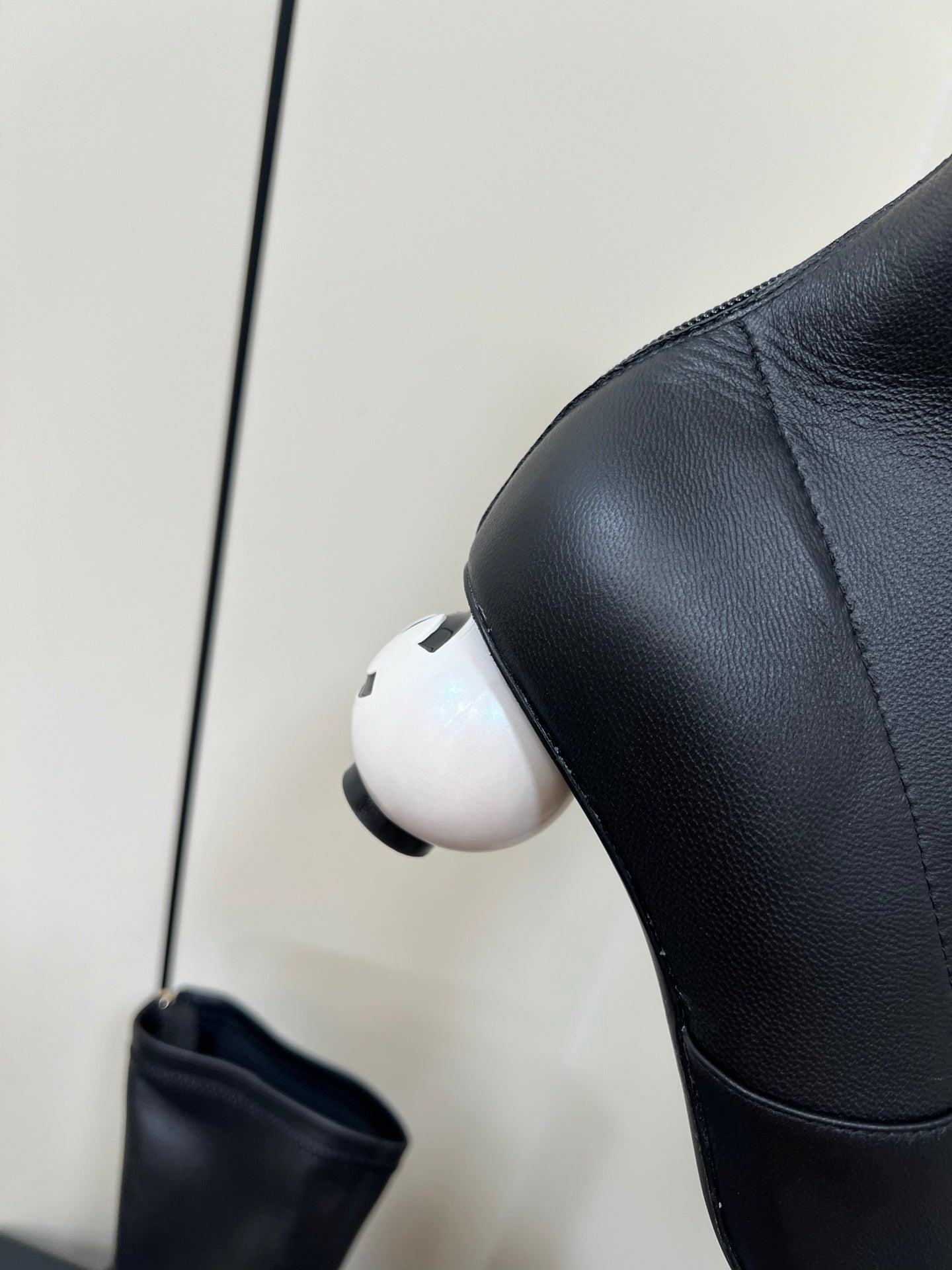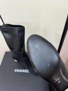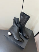 Chanel Double C Giant Pearl Heel Stretch Boots Black Sheepskin 441707