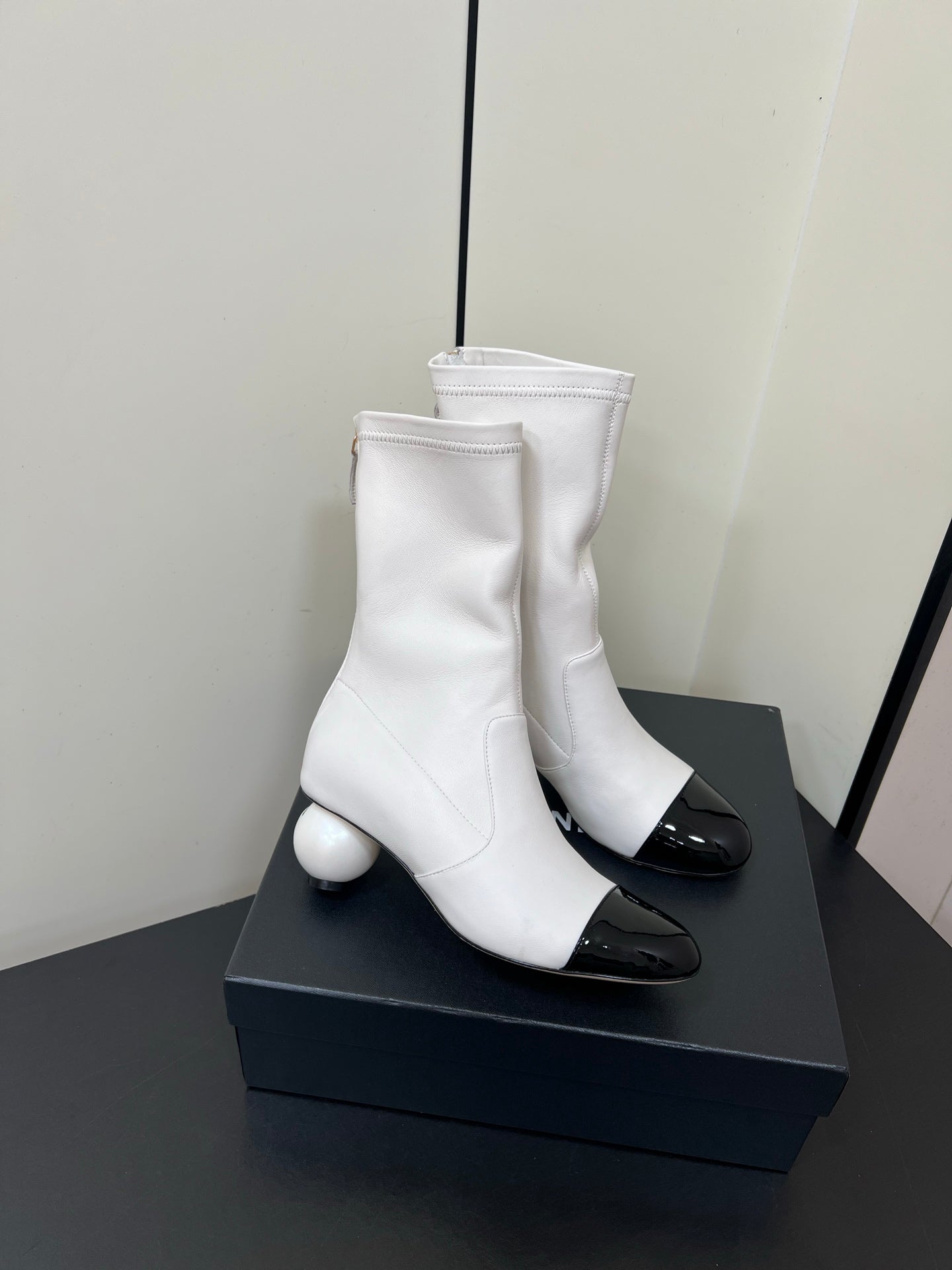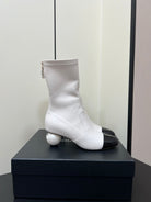 Chanel Double C Giant Pearl Heel Stretch Boots White Sheepskin 441706
