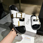 CHLOÉ DAD SANDALS IN WHITE CALFSKIN WITH GOLD HARDWARE