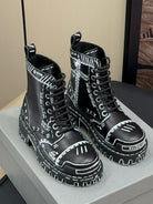 CHUNKY BOOTS IN BLACK SMOOTH CALFSKIN WHITE PRINT