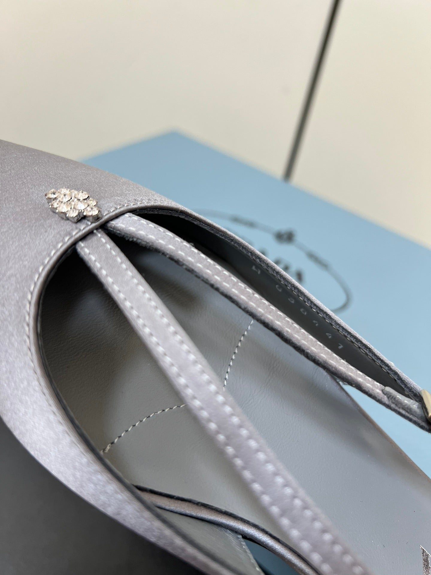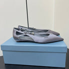 CUT-OUT BALLERINA FLAT IN WARM GRAY SATIN ATTACHED BEAD BUCKLE