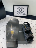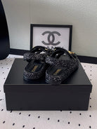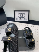 dad sandal black white tweed
