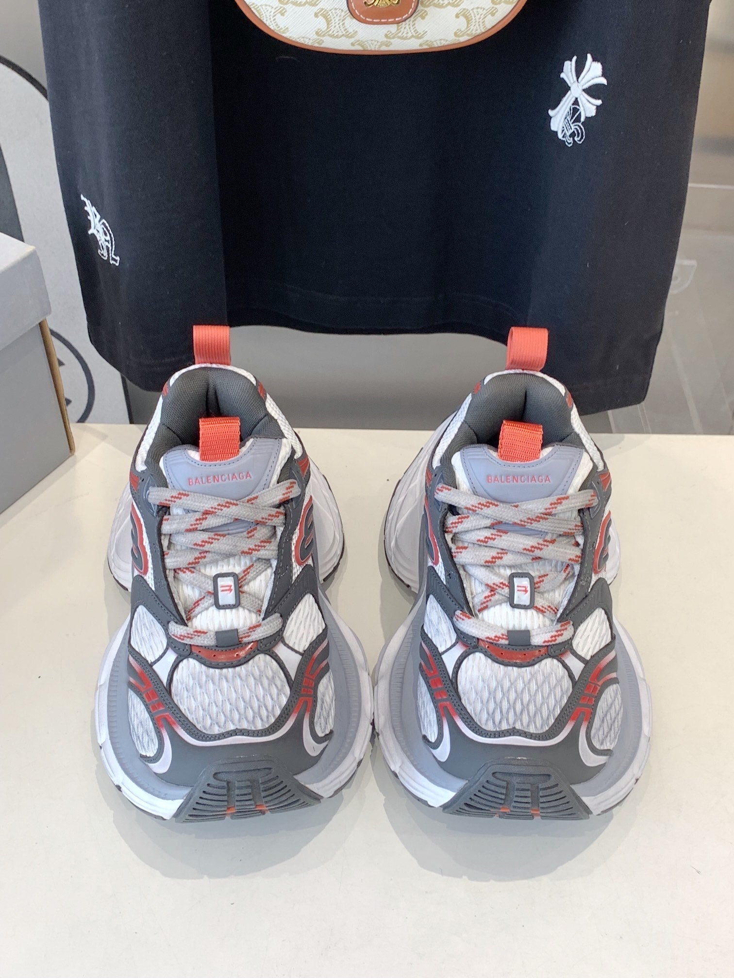DAD SHOES IN GREY RED WHITE MESH AND CALFSKIN