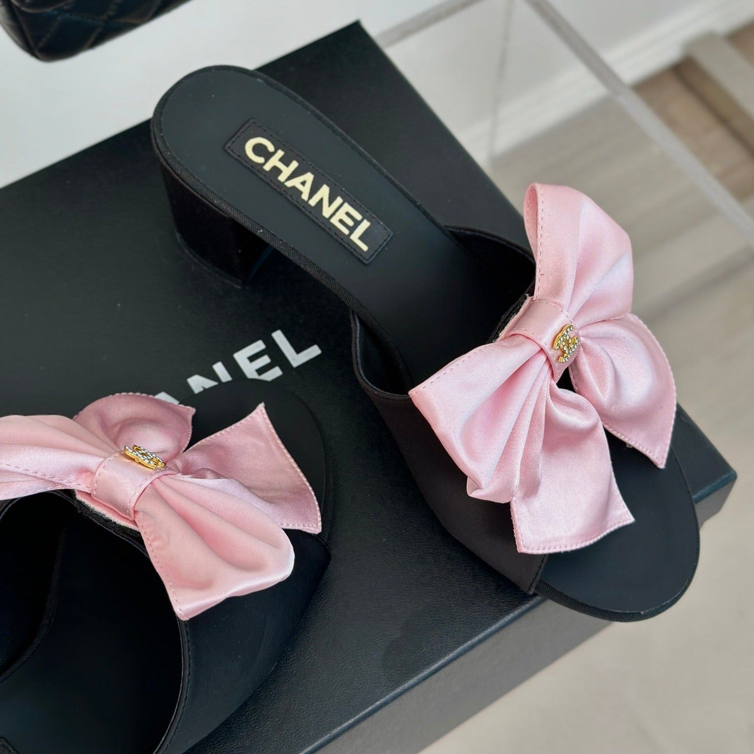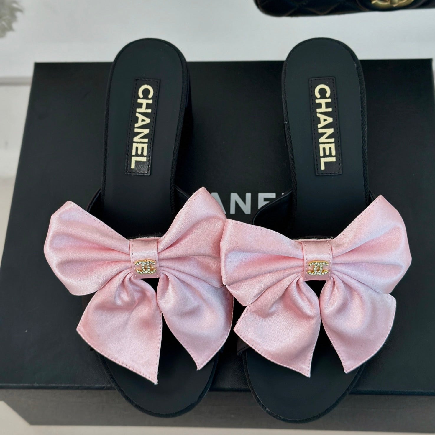 cc pink big bow sandal 60 black lambskin