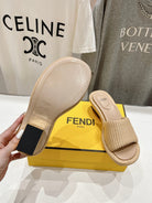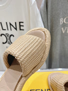 FENDI FFOLD MEDIUM-HEEL SANDALS 45 MM IN TUSCAN BEIGE COTTON FIBRE