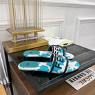 FENDI FLORAL SLIDES IN BLUE MIX WHITE FABRIC