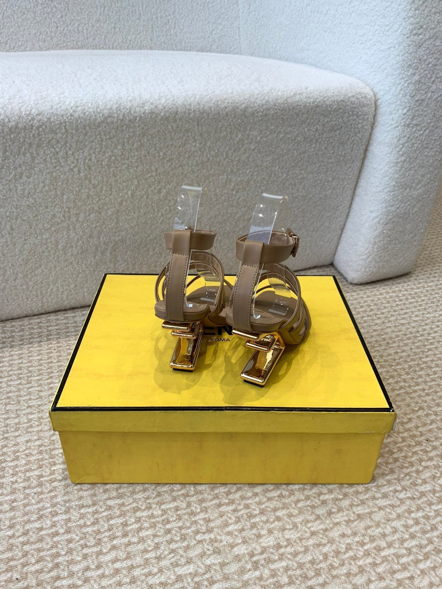 FENDI HIGH SANDAL 10 CM IN SEPIA BROWN CALFSKIN