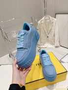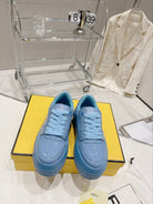 FENDI LOW-TOP TRAINER IN CERULEAN BLUE CALFSKIN