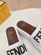 FENDI SIGNATURE WEDGE PLATFORM 6 CM IN WHITE FIBRE WITH BROWN EMBROIDERED LOGO