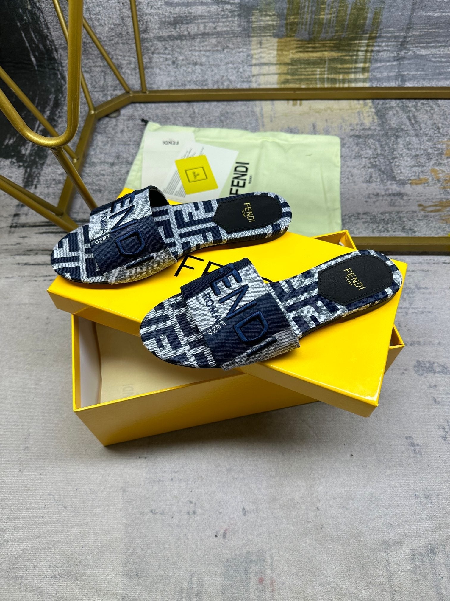 FF 5 Black Blue Grey Canvas Slide