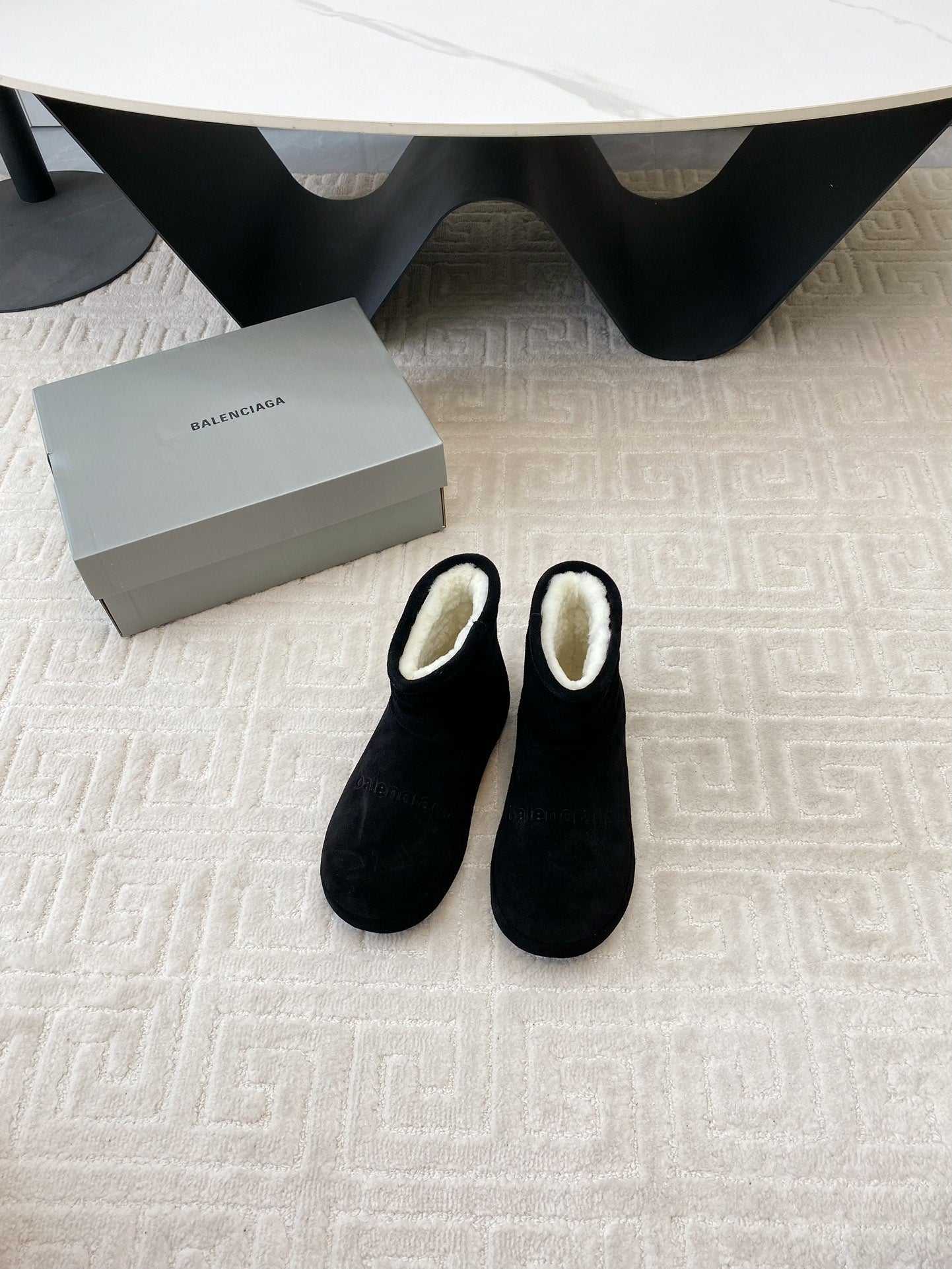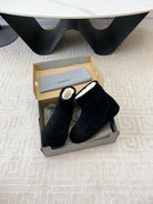 FLAT ANKLE BOOTS IN BLACK SUEDE AND SHEARLING LINING