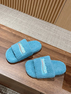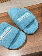 FURRY SLIDES IN SKY BLUE CURLY SHEARLING