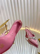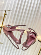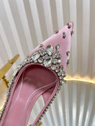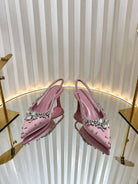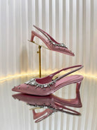 GC 2025 Crystal Embellished 55mm High Heels Slingbacks Pink Silk Sheepskin 294527