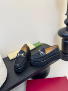 GC 2025 Horsebit Wedge Loafer Navy Blue Canvas Cowhide 296841