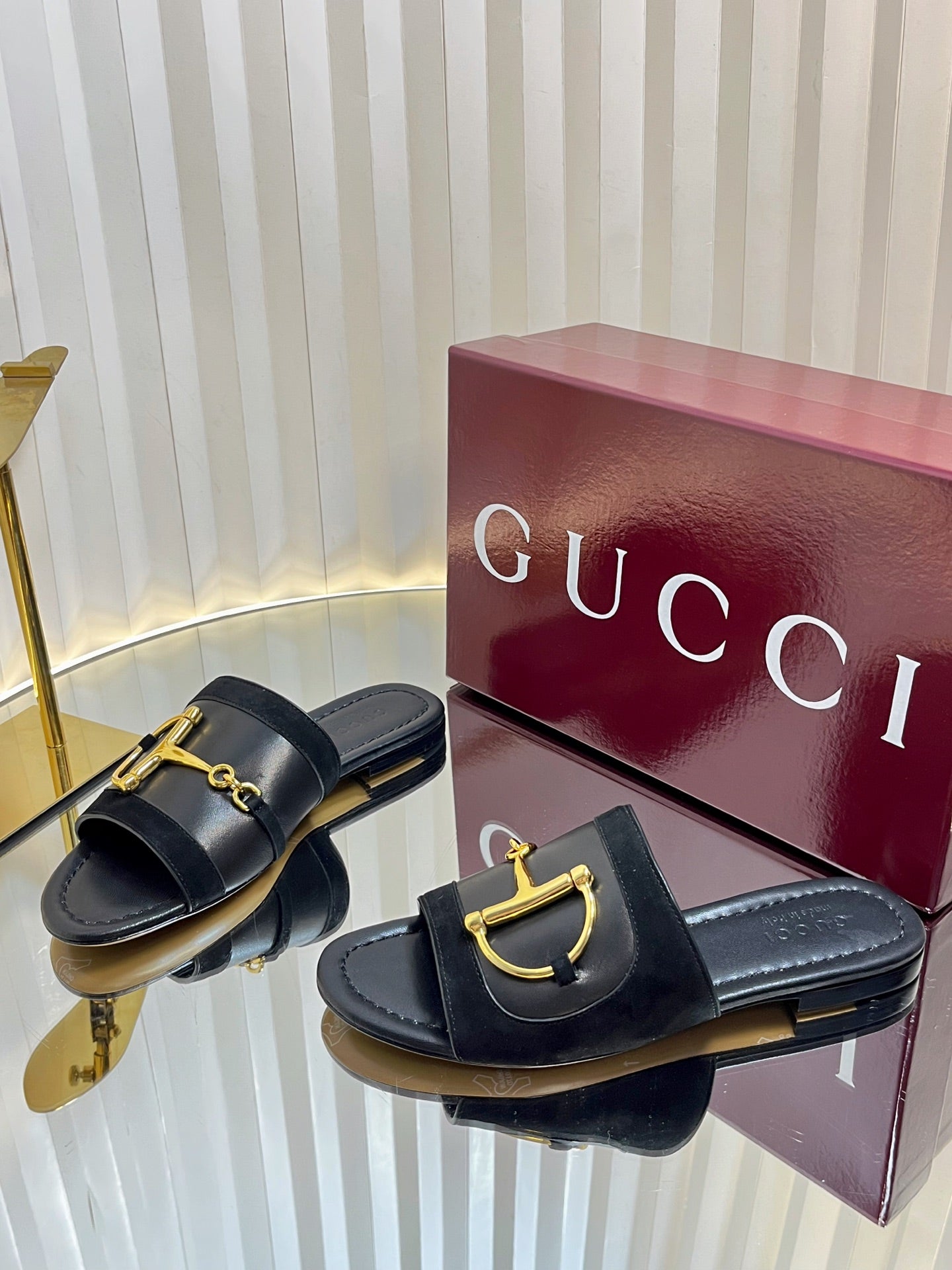 GC 25 Horsebit Sandals 10mm Black Suede Sheepskin 294652