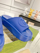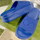 GC 25 Interlocking G 50mm Slide Sandal Blue Cowhide 292383
