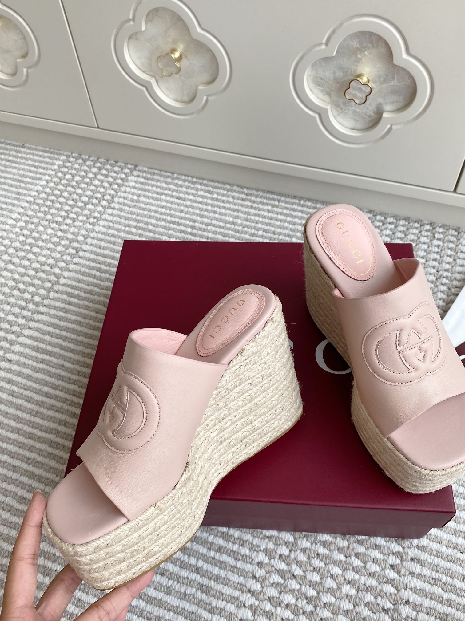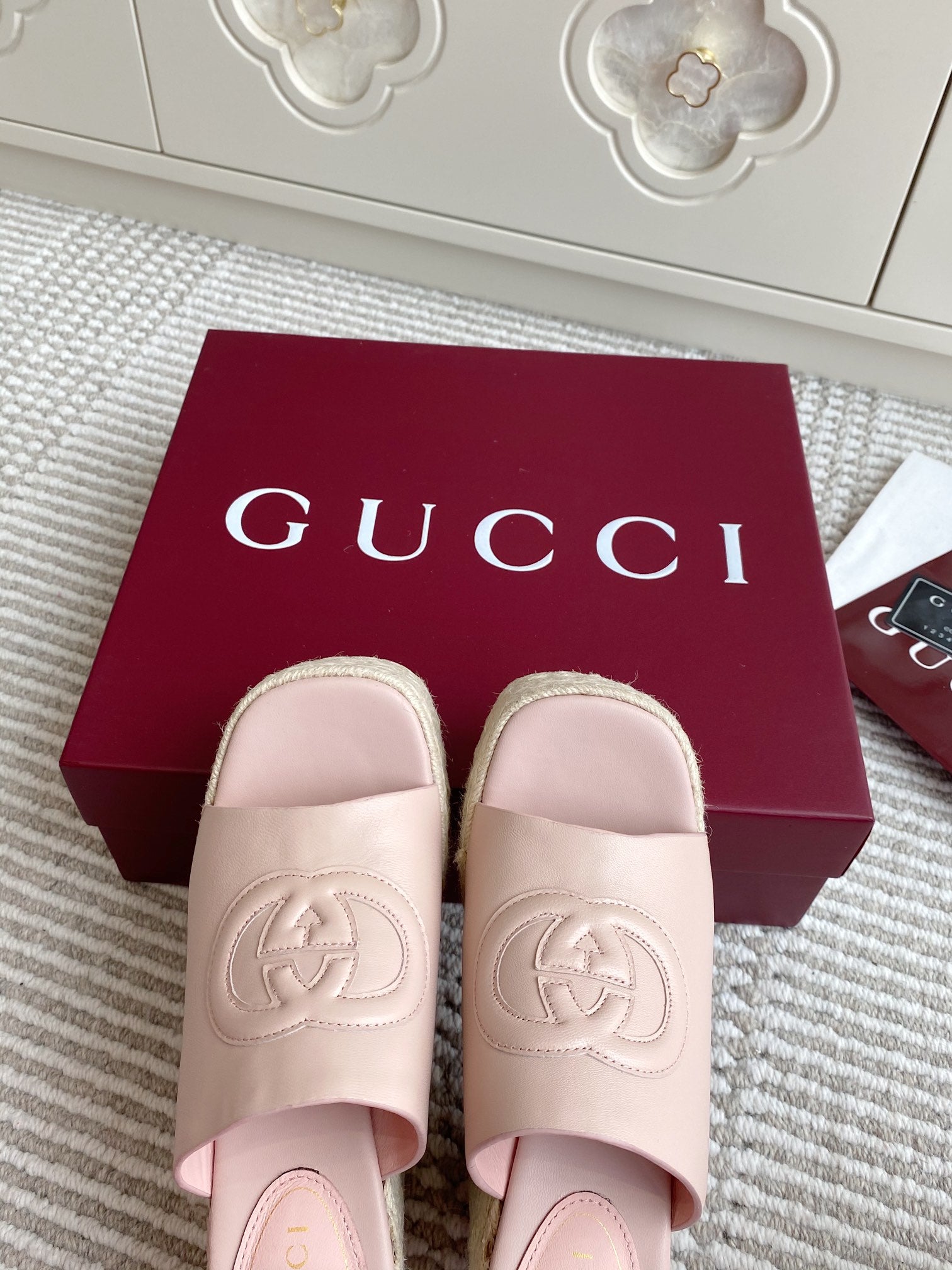 GC 25 Interlocking G Sandal Pink Cord Cowhide 291032