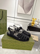 GC 25 Silver Double G Sandal Black Rubber 292433