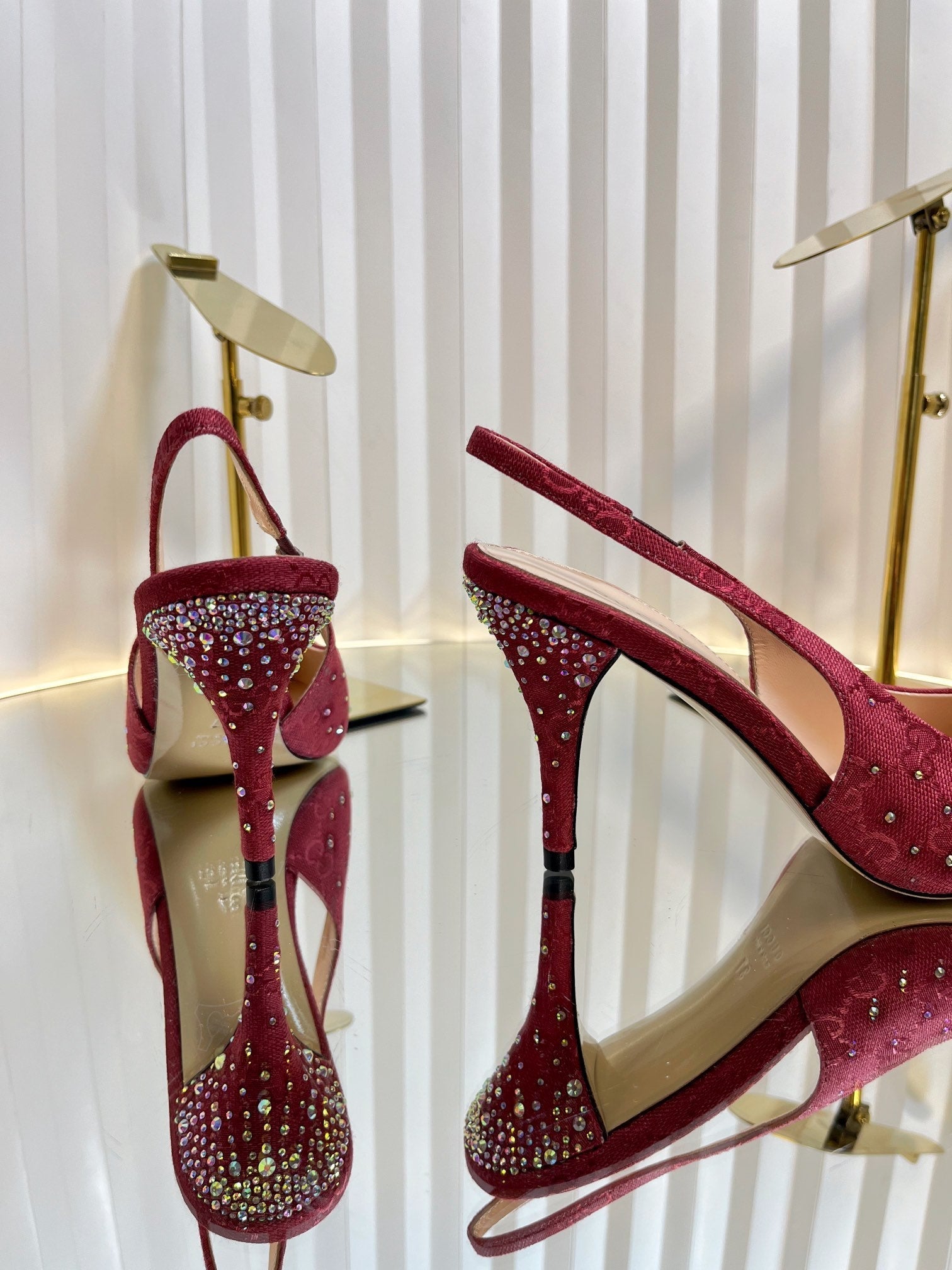 GC Crystal Horsebit Slingback 100mm Red Canvas lambskin 294618
