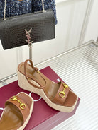 GC Floral Platform Wedge Sandal Brown Mix Beige lambskin