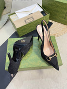 GC Horsebit Slingback Pump 100mm Black Canvas Sheepskin 294564