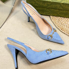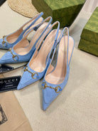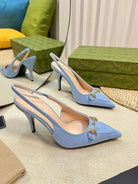 GC Horsebit Slingback Pump 100mm Blue Canvas Sheepskin 294550