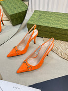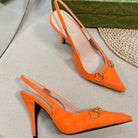 GC Horsebit Slingback Pump 100mm Orange Canvas Sheepskin 294548
