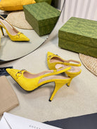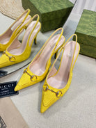 GC Horsebit Slingback Pump 100mm Yellow Canvas Sheepskin 294549